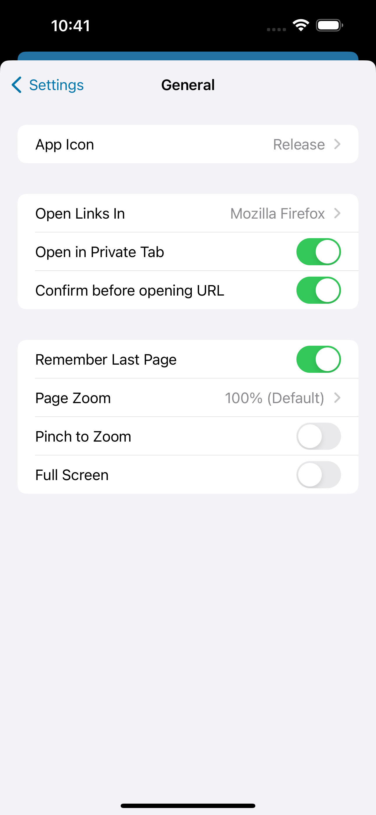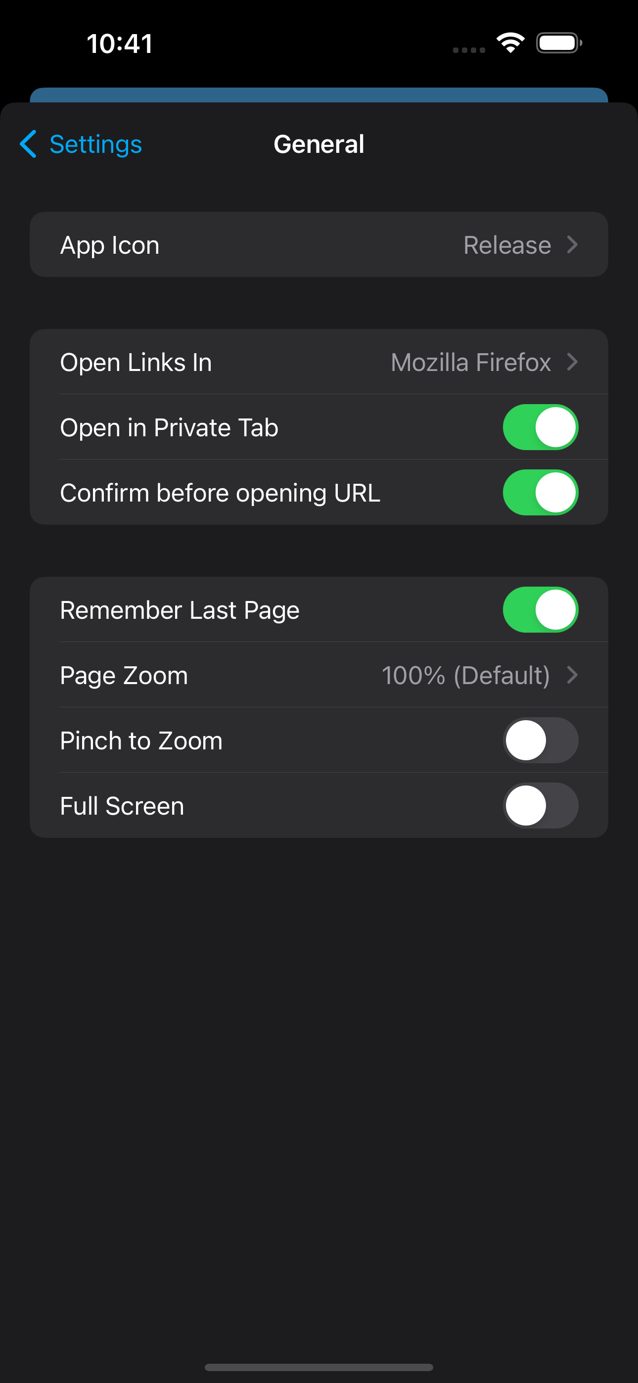 links). The new "Open in Private Tab" UI toggle in settings only shows